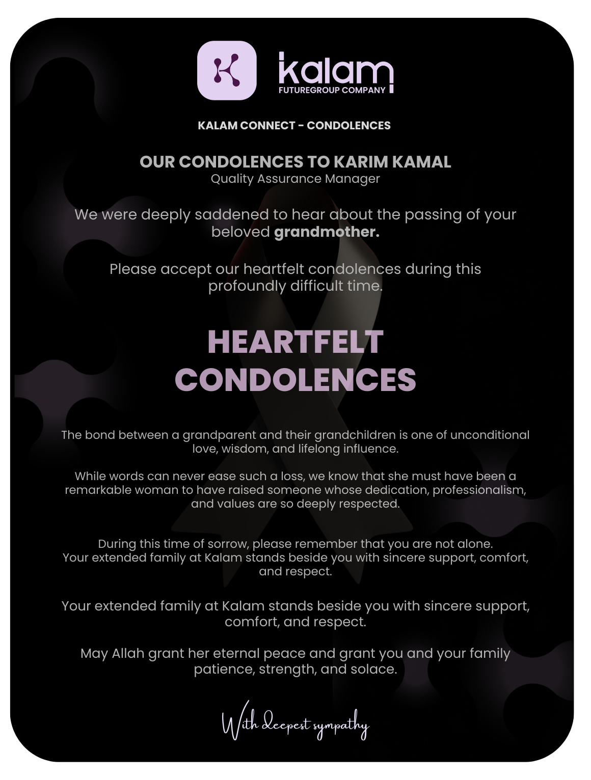 Our Condolences to Karim Kamal